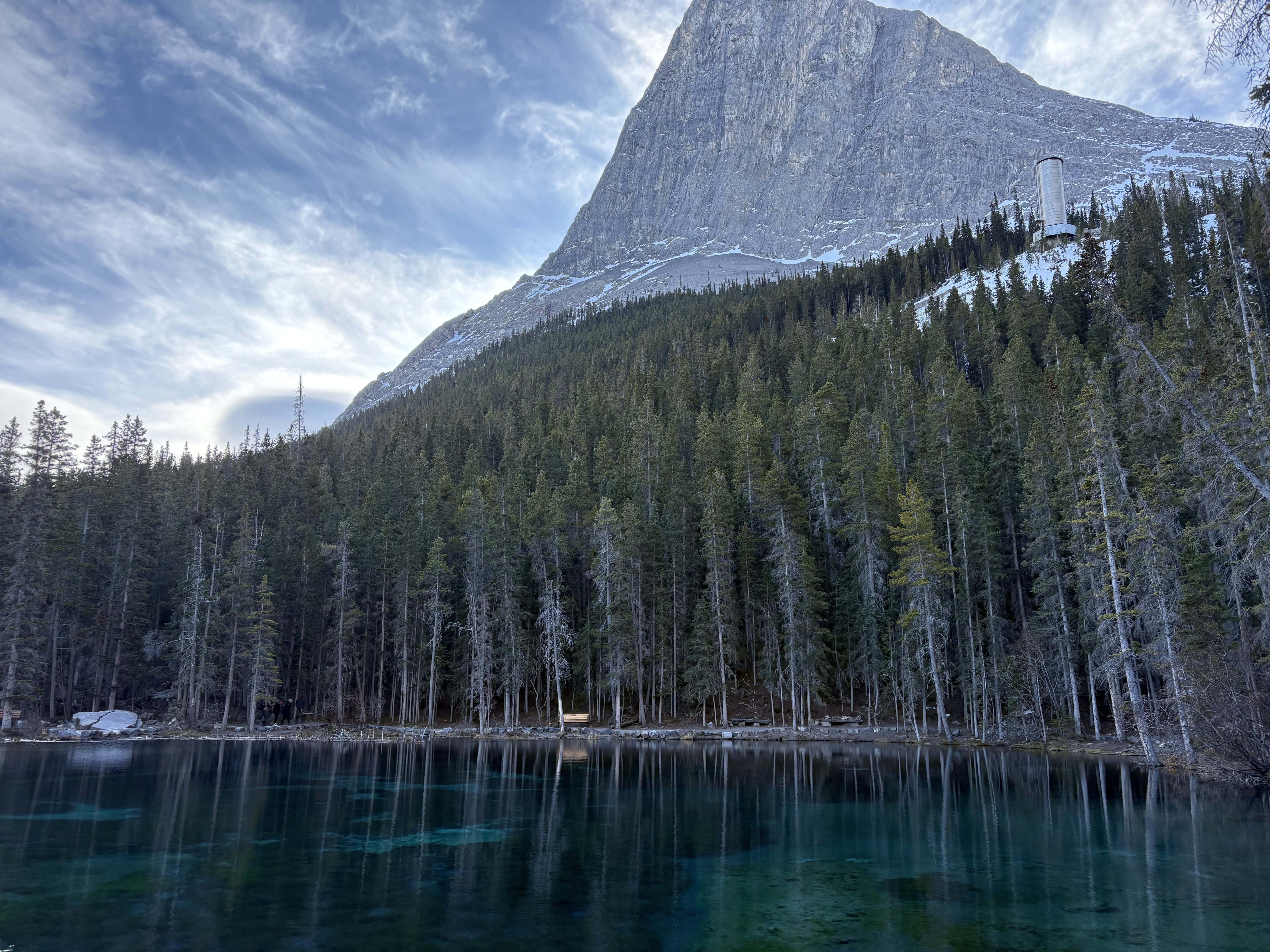 is known for its mirror-like mountain reflections and golden larch trees in the autumn, with an easy 1km loop trail that's a photographer’s favourite for its stillness and symmetry. Widowmaker